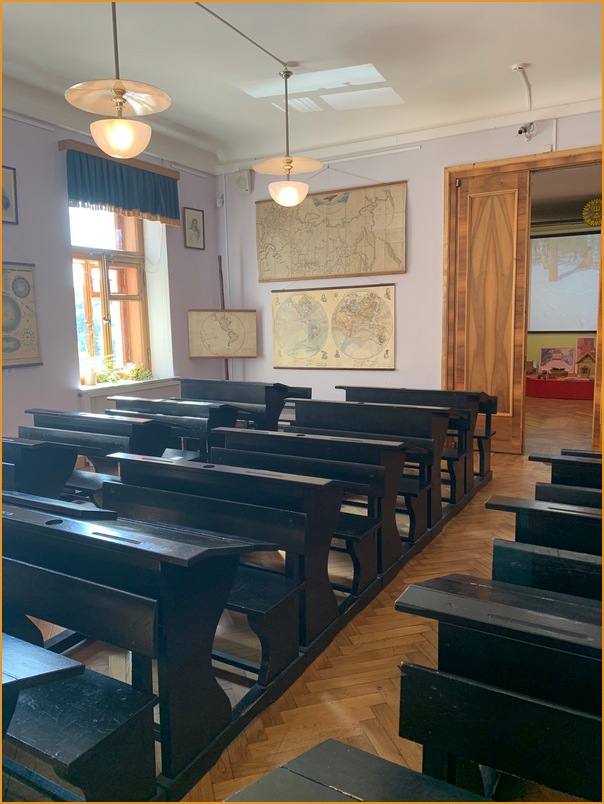 Одно из помещений нынешнего музея, воссоздано и передает атмосферу и демонстрирует послереволюционные школьные классы. Поделюсь, возможно Вы, как и я тоже что-нибудь заприметите из своего детства.