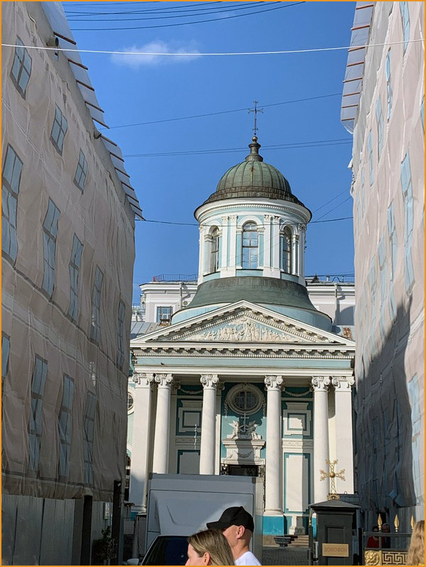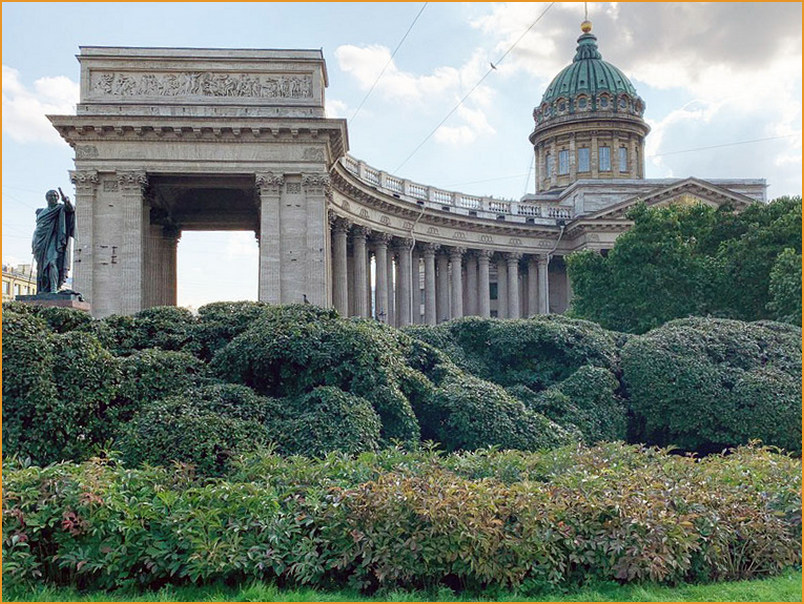 Казанский кафедральный собор утопающий в зелени,