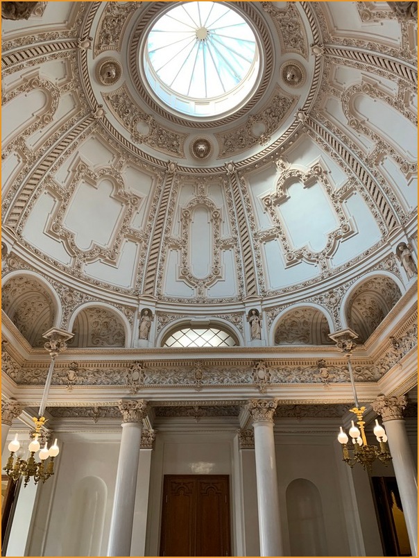 А какой купол, шикарно декорированный лепниной, над центральной лестницей!