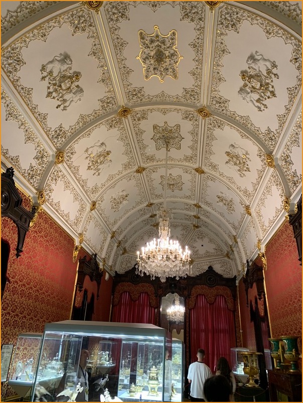 Свод Красной гостиной дворца, ничуть не уступает своим декором парадному куполу.