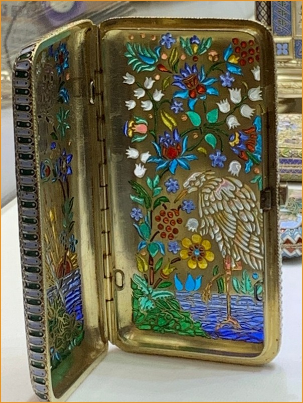 Великолепное множество бытовых предметов, как портсигары, чайные сервисы, сумочки… Невероятно красиво, шедеврально, точно, изящно и ювелирно! Очень тонкая, филигранная, кропотливая работа. Друзья, это не передать словами, это нужно видеть!