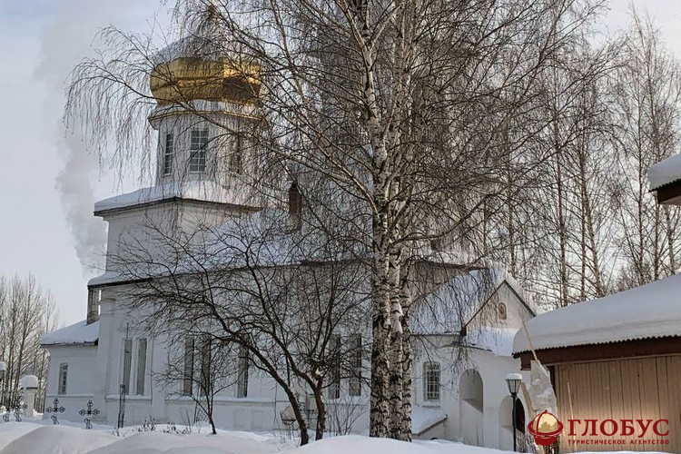 - 12:00 – Посещение Успенского мужского монастыря и храма Успения Пресвятой Богородицы. Это одна из древнейших обителей Урала, основанная в 1580 году. В XVIII веке монастырь был закрыт, но спустя более двухсот лет – в 1997 году – возродился и вновь открыл свои двери для людей. На вершине холма возвышается величественный храм XIX века, а внизу расположена Часовня Святого Трифона Вятского с целебным источником, известным своими благодатными свойствами.
